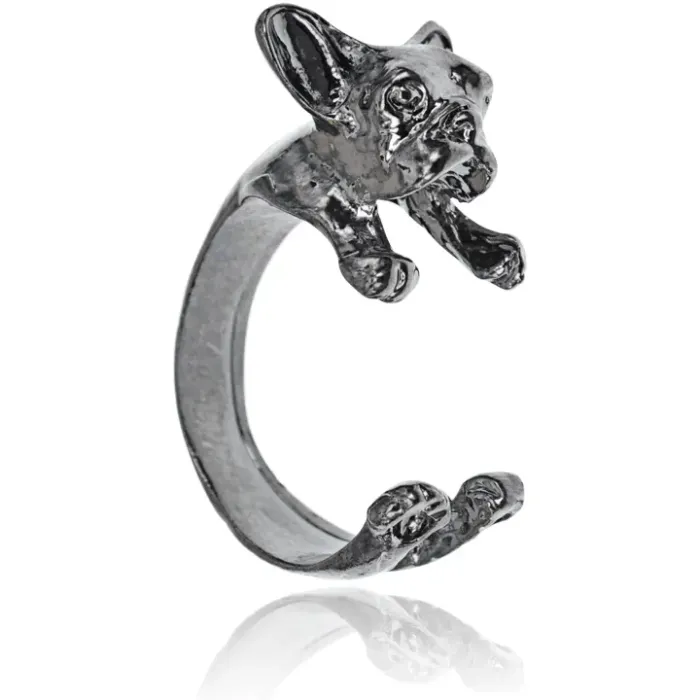 Безразмерное кольцо с изображением собаки в цвете темный металл.