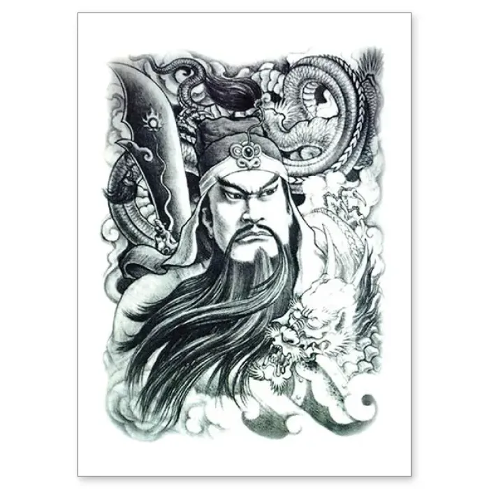Временная татуировка-переводка с изображением Гуань Гуна для декора тела.