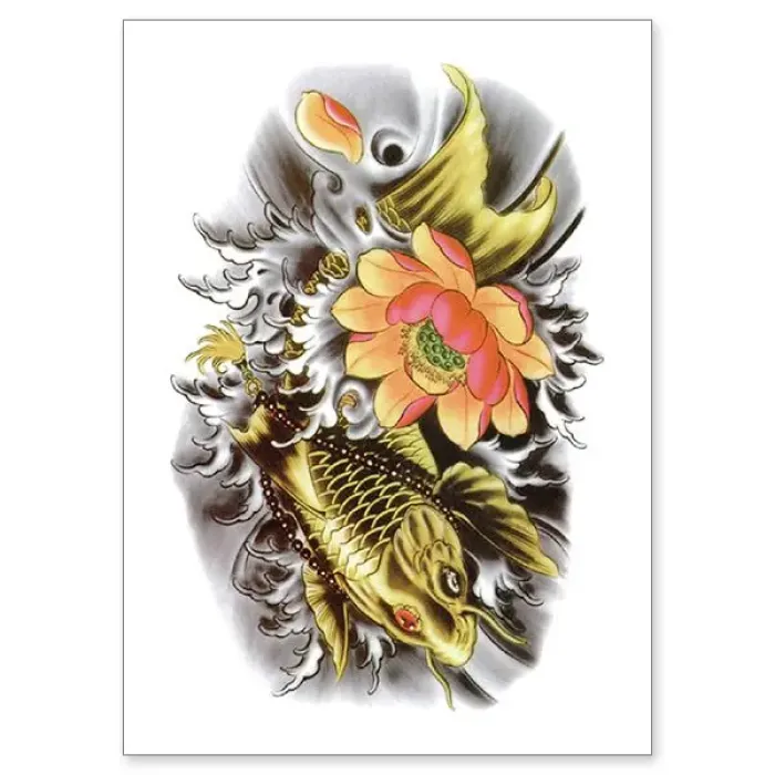 Временная татуировка-переводка с изображением карпа и цветка для декора кожи.