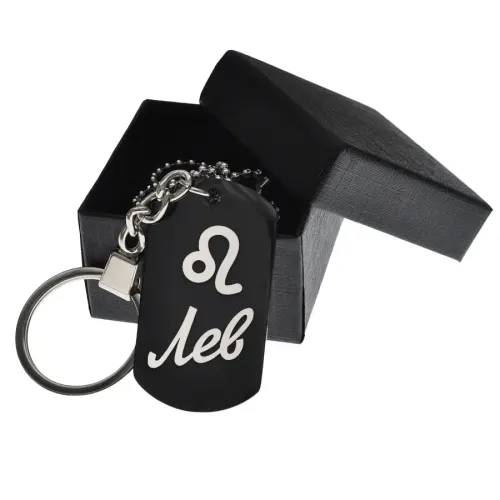 Размеры и комплектация: Размер жетона 49х28 мм. В комплекте кольцо для ключей, шариковая цепочка с регулировкой длины и подарочная коробка.