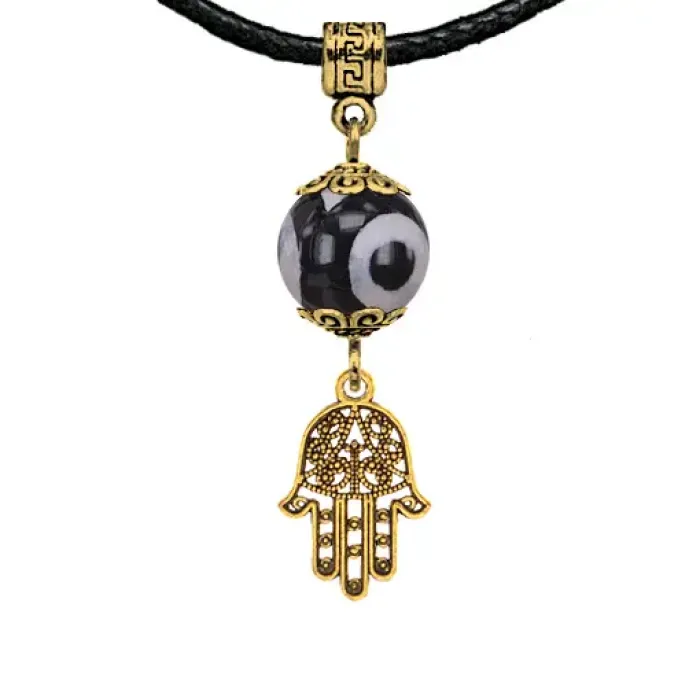 Амулет Хамса с трехглазой бусиной Дзи — это мощный символ защиты и процветания, который традиционно используется для привлечения удачи и богатства. Бусина Дзи из натурального агата считается одним из самых сильных амулетов, дарующих своему обладателю здоровье, долголетие и уважение в обществе.