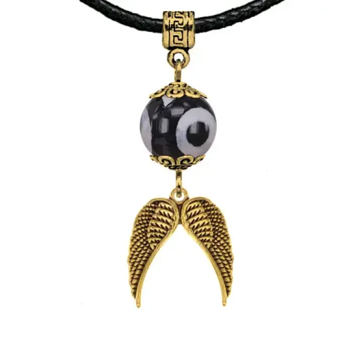 Амулет Крылья ангела (защита высших сил), бусина Дзи из агата MKAG-35-2043