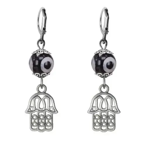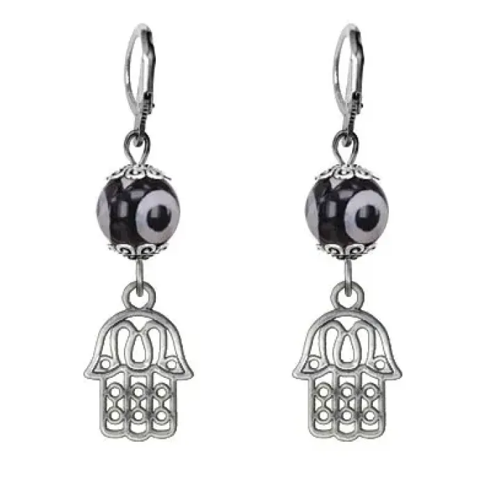 Серьги Хамса (от сглаза и зла), бусины Дзи из агата SE-MKA35-01