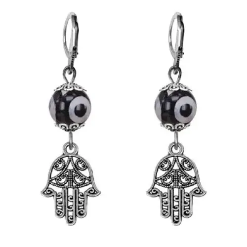 Серьги ручной работы из коллекции Магия камня 2 — это не только стильный аксессуар, но и мощный амулет. Символ Хамсы традиционно используется для защиты от сглаза и негативной энергии, а бусина Дзи из натурального агата придаёт уверенности и приносит удачу. Основные особенности: