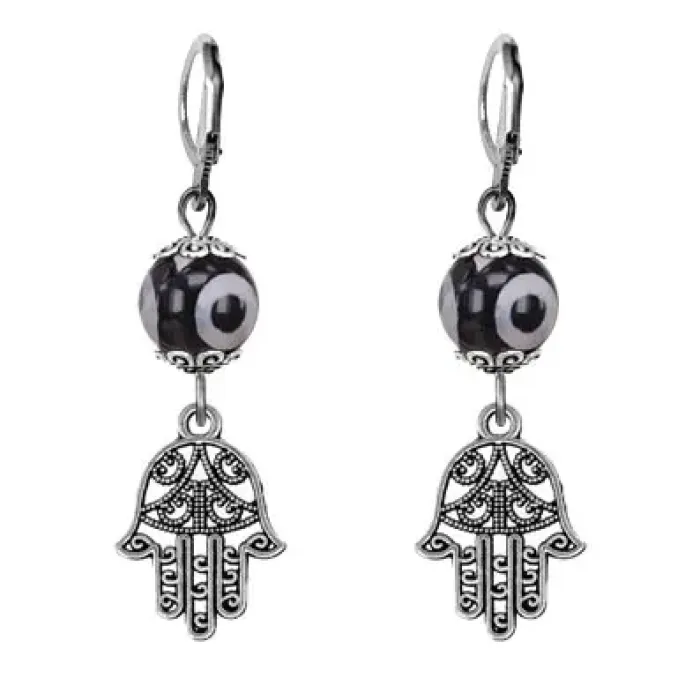 Серьги Хамса (от сглаза и зла), бусины Дзи из агата SE-MKA35-0001