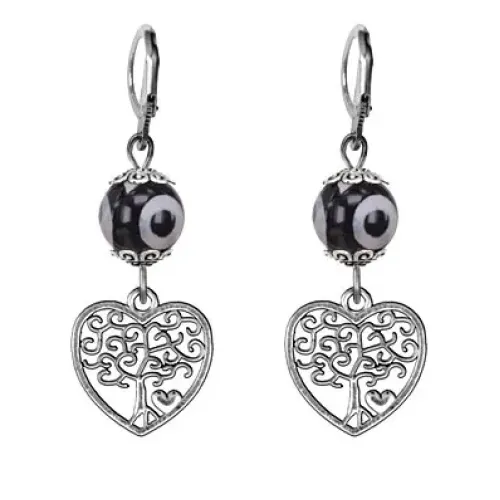 Серьги Дерево любви (любовь, семья), бусины Дзи из агата SE-MKA35-06