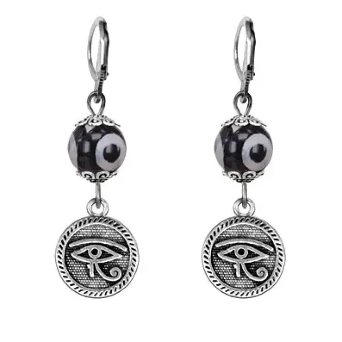 Серьги Око Ра (дар предвидения), бусины Дзи из агата SE-MKA35-09