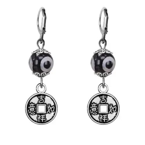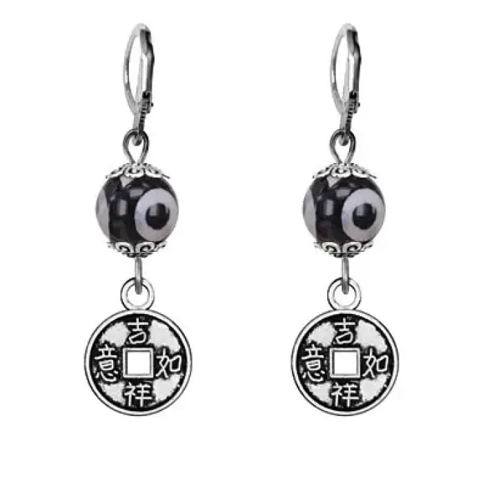 Серьги Монета (богатство), бусины Дзи из агата SE-MKA35-13