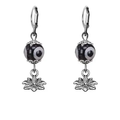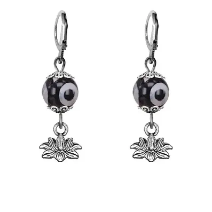 Серьги Лотос (гармония и развитие), бусины Дзи из агата SE-MKA35-15