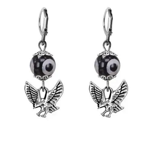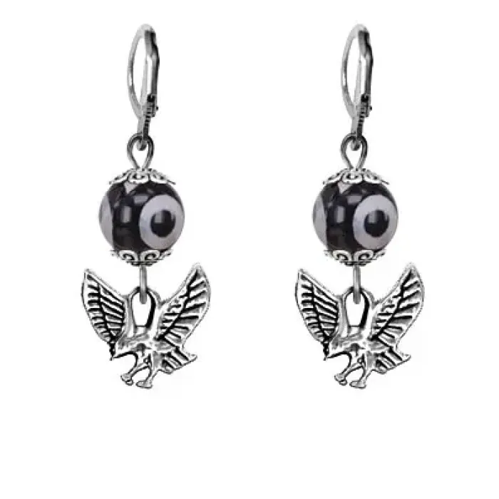 Серьги Орел (защита, сила, победа), бусины Дзи из агата SE-MKA35-24