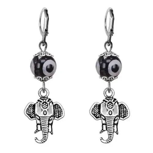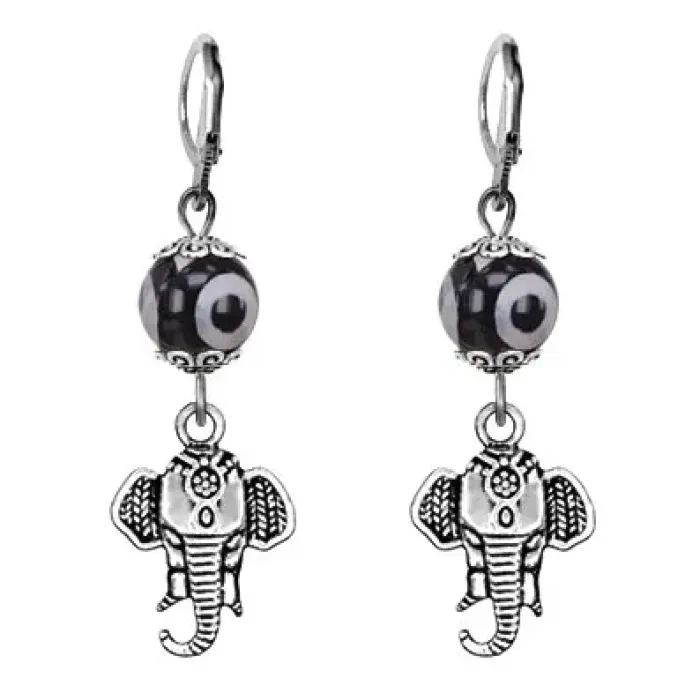 Серьги Слон (мудрость, сила, долголетие), бусины Дзи из агата SE-MKA35-26