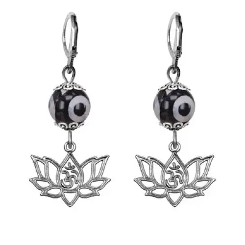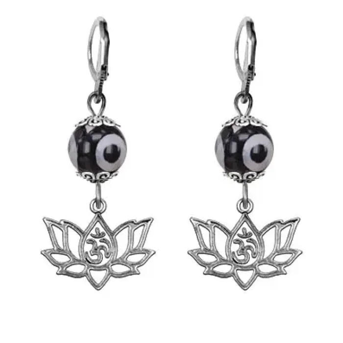 Серьги Лотос и Ом (гармония и развитие), бусины Дзи из агата SE-MKA35-30