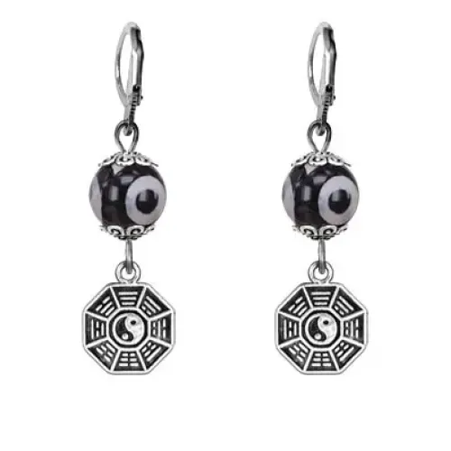 Серьги Багуа (защита от негативной энергии), бусины Дзи из агата SE-MKA35-34