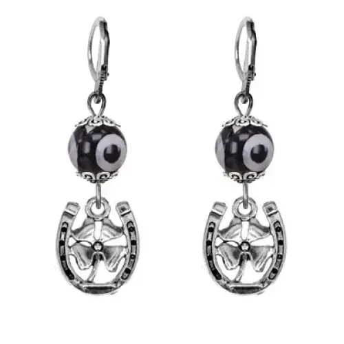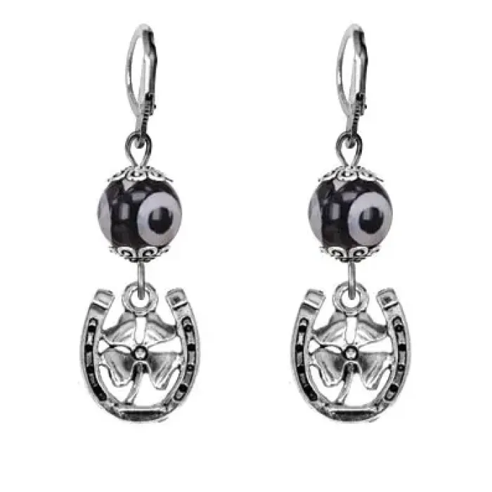 Серьги Подкова и клевер (счастье и удача), бусины Дзи из агата SE-MKA35-P001