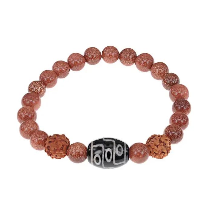 Браслет с 9-глазой Дзи, нат. рудракшей и синт. камнем Коричневый авантюрин BSDR-01-01