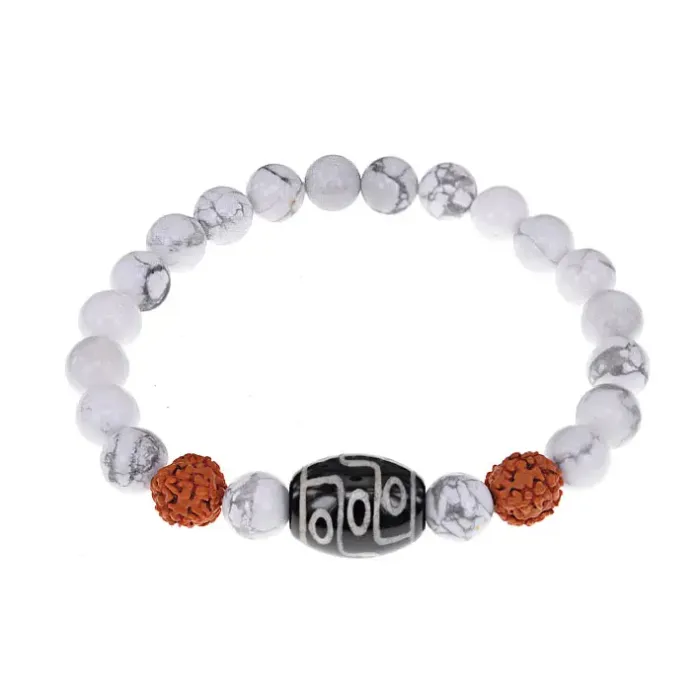 Браслет с 9-глазой Дзи, нат. рудракшей и синт. камнем Кахолонг BSDR-01-07