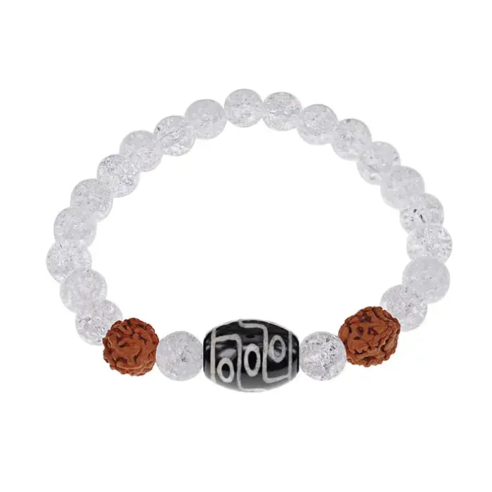 Браслет для ношения, сочетающий бусину Дзи, рудракшу и синтетический камень.