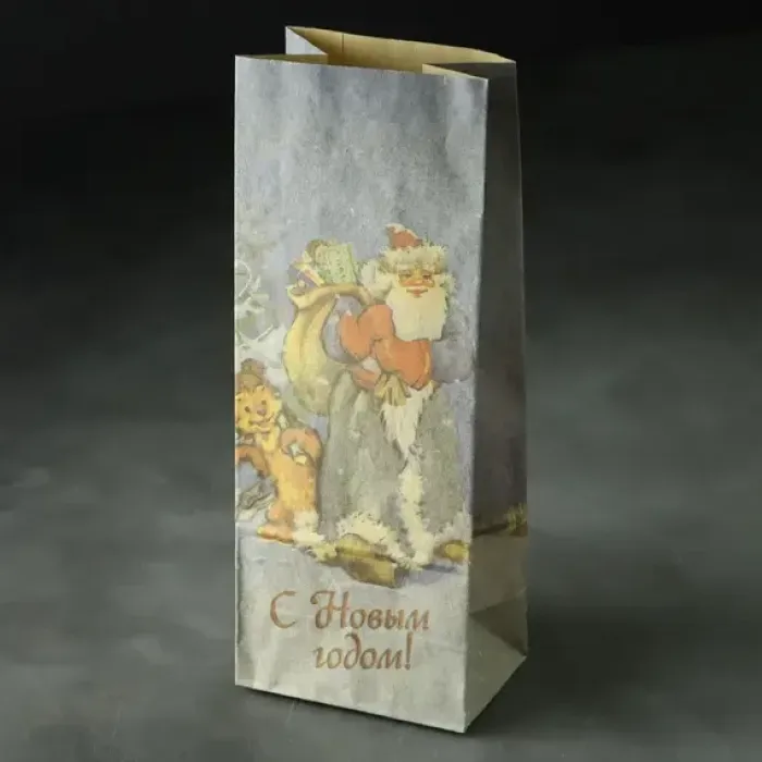 Однослойный пакет из серого крафта с новогодней тематикой предназначен для упаковки подарков и сувениров. Отличается стильным дизайном и универсальными размерами, что делает его подходящим для различных целей.