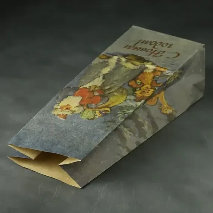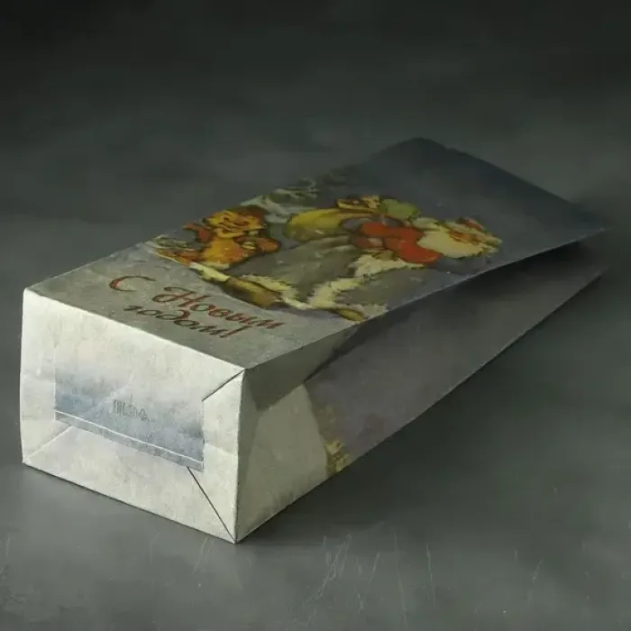 Пакет выполнен из прочной крафт-бумаги, обеспечивающей долговечность использования. Винтажная иллюстрация на сером фоне добавляет изделию особый шарм и способствует созданию праздничного настроения. Компактные размеры позволяют использовать его для небольших презентов.