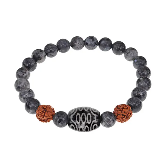 Браслет с 21-глазой Дзи, нат. рудракшей и синт. камнем Лабрадор BSDR-02-08
