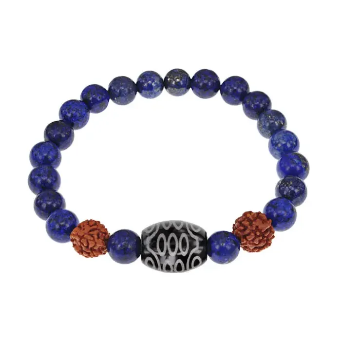Браслет с 21-глазой Дзи, нат. рудракшей и синт. камнем Лазурит BSDR-02-10