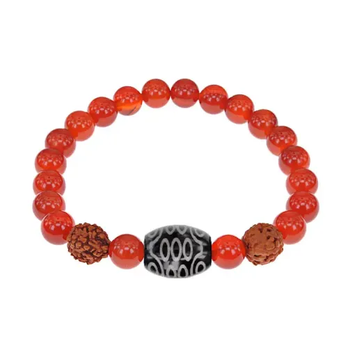 Стрейч-браслет для ношения в качестве сувенира или украшения. Состоит из бусин натуральной рудракши, синтетического сердолика и тибетской бусины Дзи из агата.