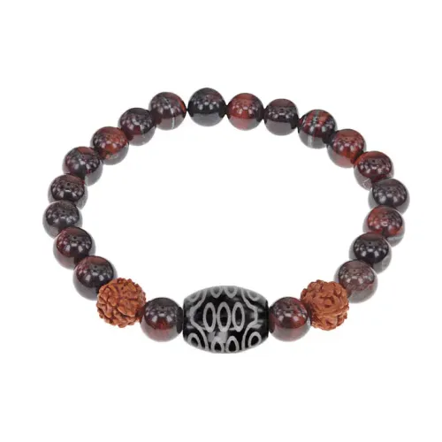 Браслет с 21-глазой Дзи, нат. рудракшей и синт. камнем Бычий глаз BSDR-02-26