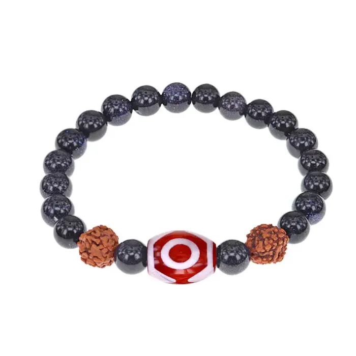Браслет с 3-глазой Дзи, нат. рудракшей и синт. камнем Синий авантюрин BSDR-03-02