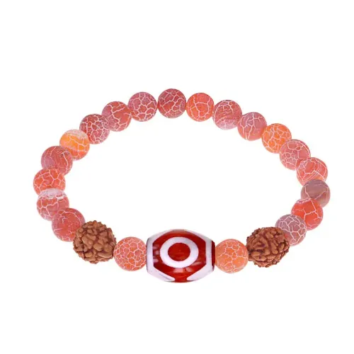 Браслет с 3-глазой Дзи, нат. рудракшей и синт. камнем Африканский агат BSDR-03-04