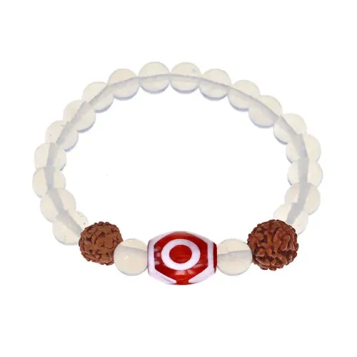 Браслет с 3-глазой Дзи, нат. рудракшей и синт. камнем Лунный камень BSDR-03-11