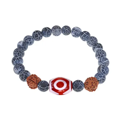 Браслет с 3-глазой Дзи, нат. рудракшей и синт. камнем Африканский агат BSDR-03-21