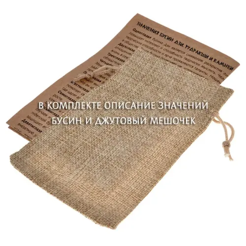 Размеры и комплектация: Внутренний диаметр ~5.5 см, диаметр бусин 8 мм. В комплекте прозрачный пакет с еврослотом, джутовый мешочек, буклет с описанием символики.
