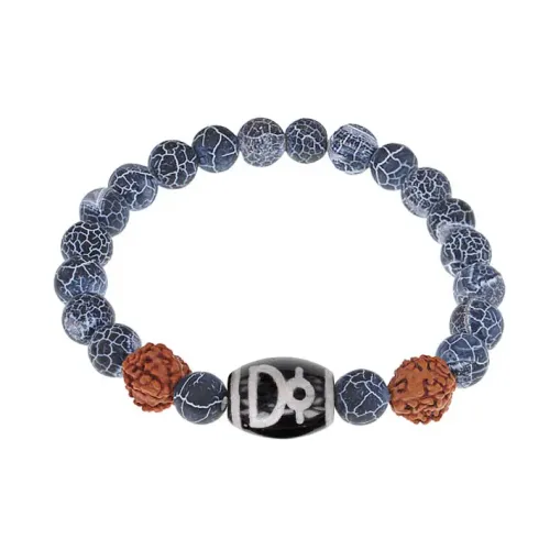 Браслет с Дзи Кубера, нат. рудракшей и синт. камнем Африканский агат BSDR-04-21