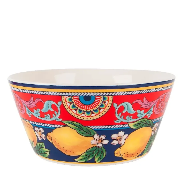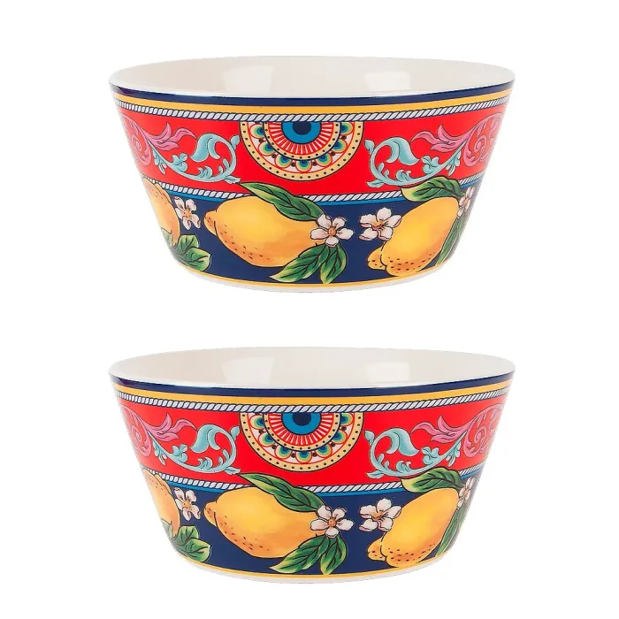 Набор из двух салатников Fruttissimo предназначен для подачи салатов, закусок и десертов. Изделия выполнены из фарфора брендом Nouvelle Home, коллекция отличается ярким декором с изображением лимонов.