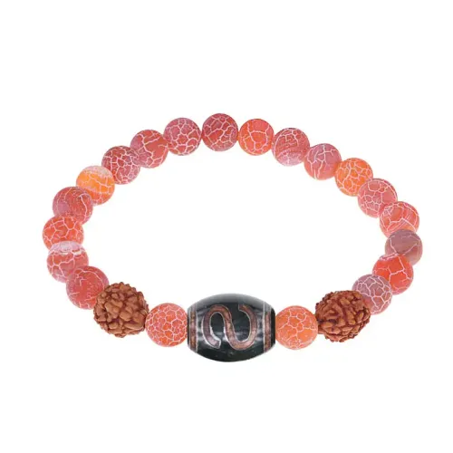 Браслет с Дзи Денежный крючок, нат. рудракшей и синт. камнем Африканский агат BSDR-06-04