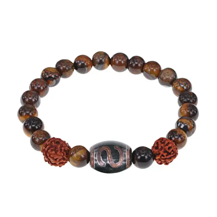 Браслет с Дзи Денежный крючок, нат. рудракшей и синт. камнем Тигровый глаз BSDR-06-19