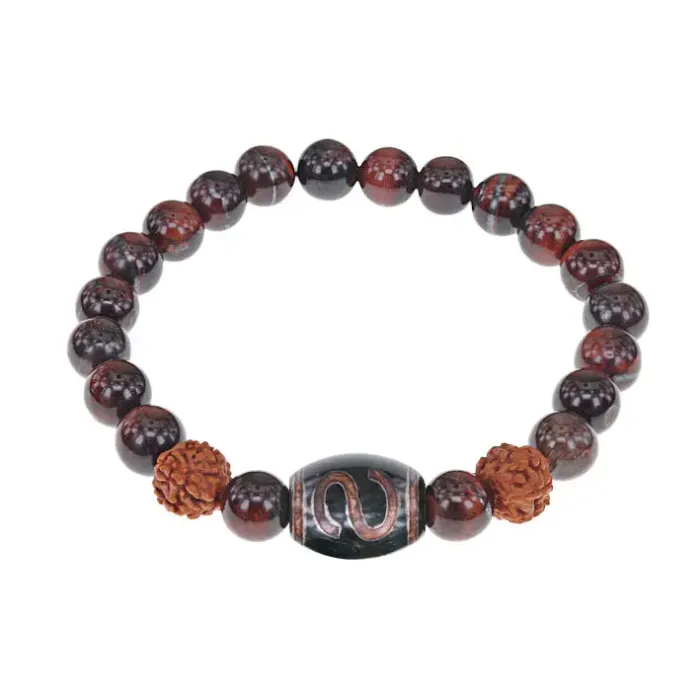 Браслет с Дзи Денежный крючок, нат. рудракшей и синт. камнем Бычий глаз BSDR-06-26
