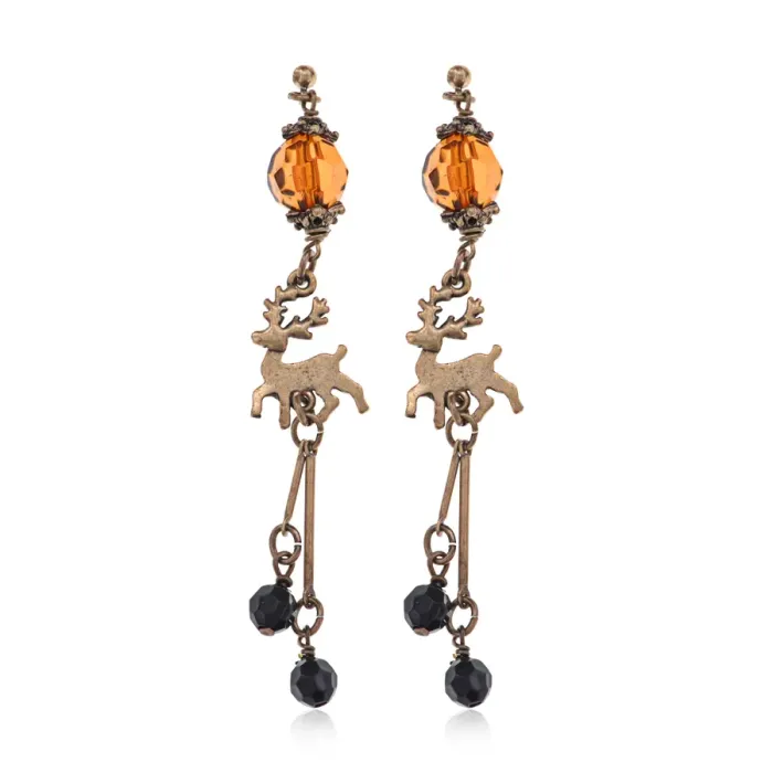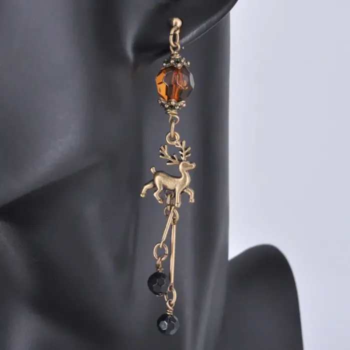 Серьги «Олень» — аксессуар из металла с покрытием под бронзу и стеклянными вставками. Тип замка — пусет.