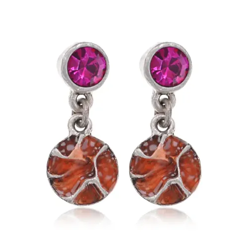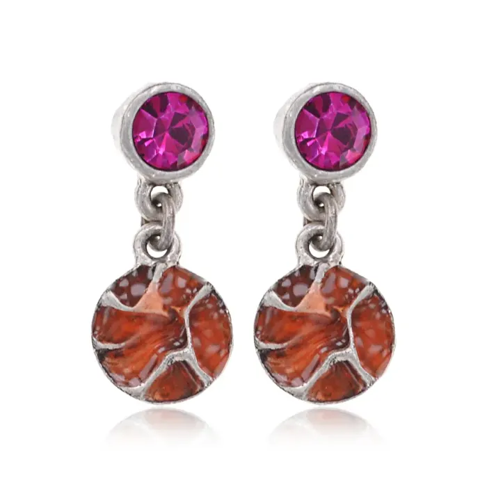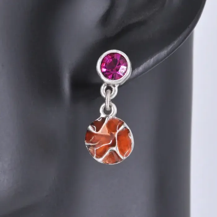 Серьги-пусеты из металла с серебряным покрытием, эмалью и вставками из кристаллов.