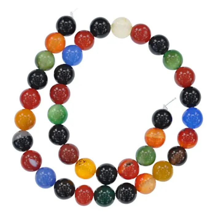 Бусины из натурального цветного агата диаметром 10 мм на нити.