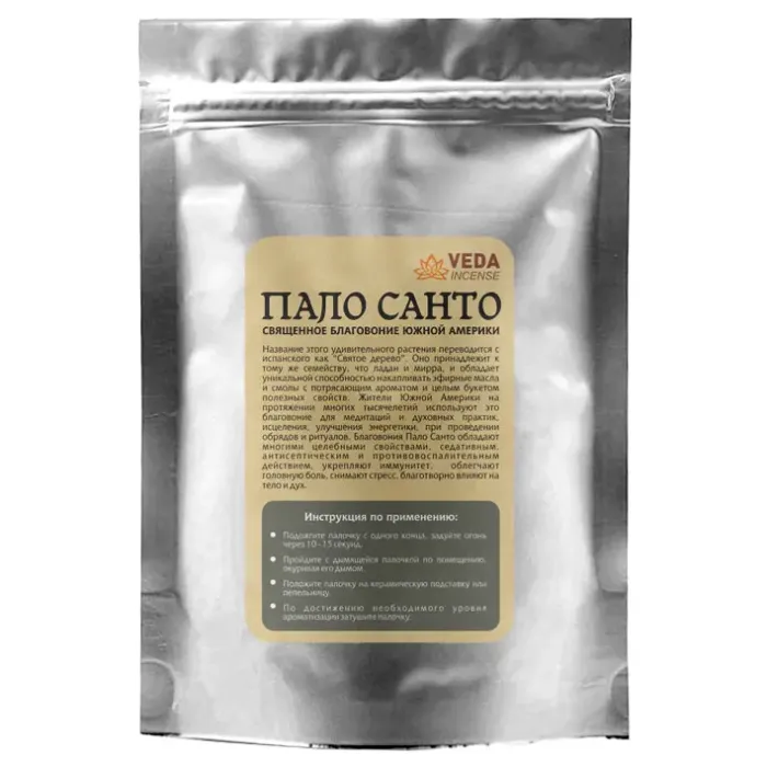 Благовония Пало Санто от Veda Incense — это уникальный аромат священного дерева из Южной Америки, создающий атмосферу спокойствия и умиротворения. Основные особенности: - В упаковке «дойпак» находится одна палочка длиной 10 см и диаметром 1 см, иногда могут быть две палочки меньшего размера. - Упаковка размером 15 х 10,5 см удобна для хранения и транспортировки. - Пало Санто ценится за свои духовные свойства и очищение энергетики пространства. - Древесина используется в ароматерапии и косметических целях. Советы по использованию: поджечь один конец палочки до самозатухания пламени, дым направлять на себя или установить на керамической подставке. После использования затушить уголёк с соблюдением мер противопожарной безопасности. Благовония идеально подходят для создания уютной атмосферы дома или как небольшой подарок для близких.