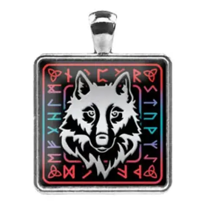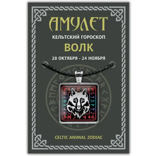 Кельтский амулет для людей, родившихся под знаком Волка. Изготовлен из бижутерного сплава с изображением под выпуклой стеклянной линзой.