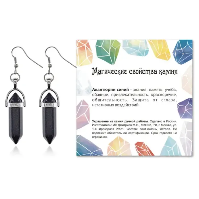 - Упаковка включает прозрачный пакет с подвесом и вкладыш с описанием значения камня, что делает эти серьги отличным подарком или сувениром.