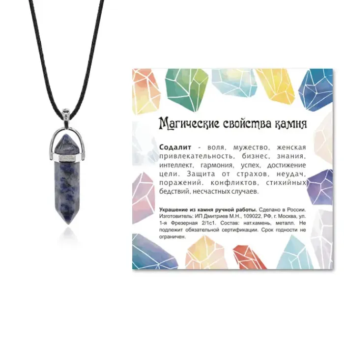 - Упаковка включает прозрачный пакет с подвесом и шнурок, а также вкладыш с описанием значения камня.