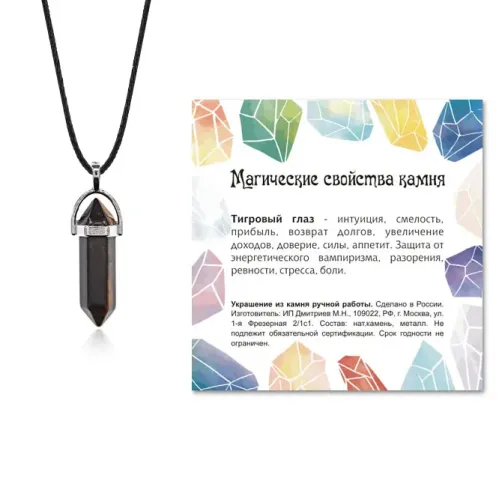 Кулон-маятник из натурального камня Тигровый глаз — это не только стильный аксессуар, но и символ силы и защиты. Этот уникальный камень традиционно ценится за свою способность приносить удачу и защищать от негативной энергии.