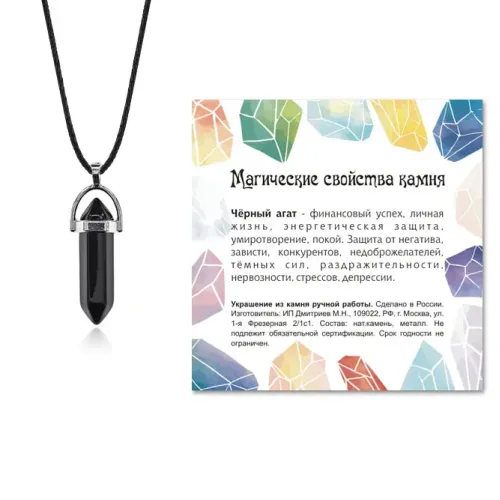 Кулон-маятник из натурального камня Чёрный агат — это не только стильное украшение, но и символ силы и защиты. Он традиционно используется в различных культурах для привлечения удачи и гармонии. Основные особенности кулона: длина 40 мм, фурнитура выполнена из бижутерного сплава с покрытием под серебро, что придаёт изделию элегантный вид. Кулон упакован в прозрачный пакет с подвесом и укомплектован шнурком, а также вкладышем с описанием значения камня. Этот кулон станет прекрасным подарком или дополнением к личной коллекции аксессуаров.