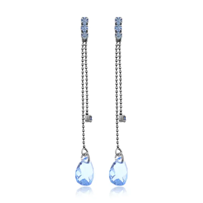 Серьги-пусеты из бижутерного сплава в форме капли с кристаллами.