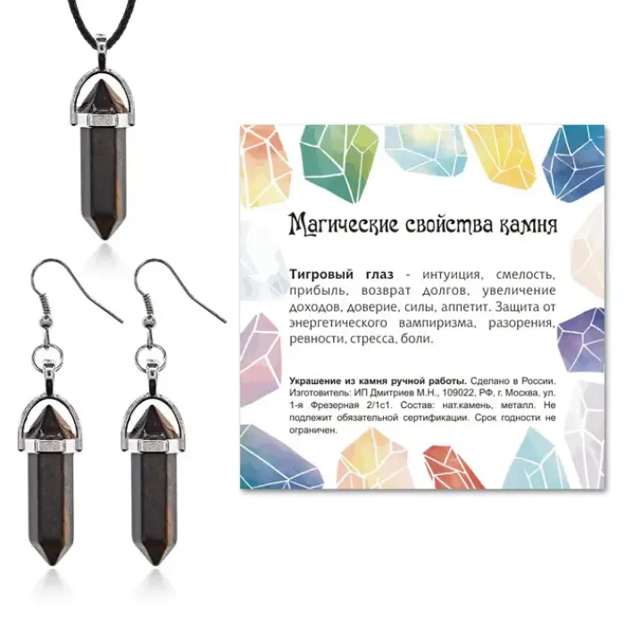 - Упаковка в прозрачный пакет с подвесом делает этот комплект отличным подарком, а вкладыш с описанием значения камня добавляет дополнительную ценность.