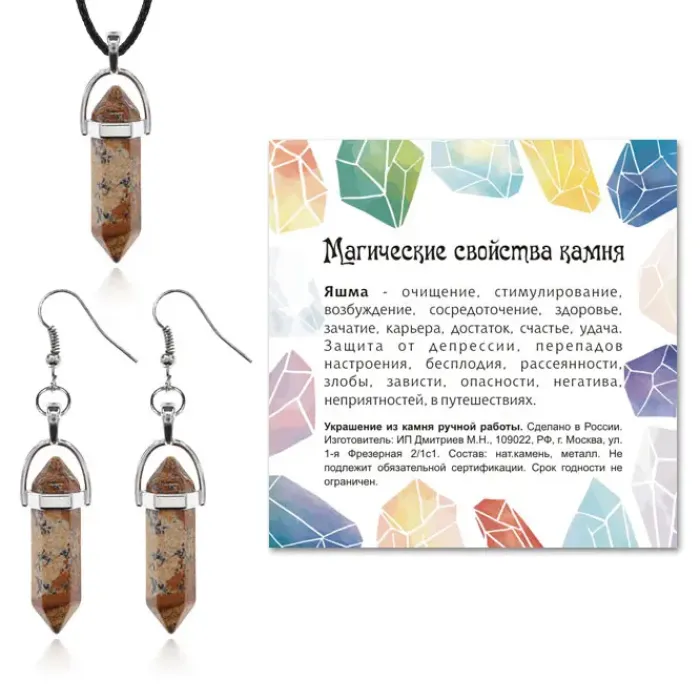 Комплект серьги и кулон из натурального камня Яшма коричневая — это стильный аксессуар, который привносит в образ нотки природной красоты и гармонии. Яшма ценится за свою уникальность и символизирует стабильность, что делает этот комплект идеальным подарком для близких.