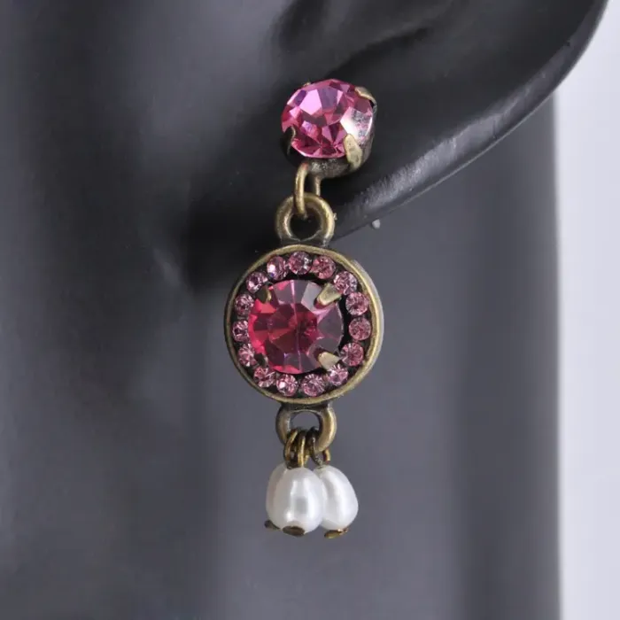 Серьги со стразами, кристаллами и жемчугом, 3х1х1см UD317